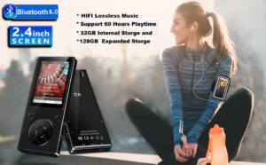 MP3 Player with Bluetooth 5.3, AGPTEK 2.4″ TFT Screen Music Player 32GB Portable with Speaker Lossless Sound with FM Radio, Voice Recorder, Supports up to 128GB, Black