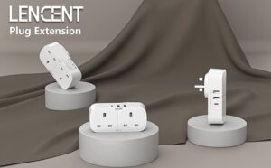 LENCENT Plug Adapter with 3 USB (Included 1 USB-C),Double Wall Plug Extension, Multi Plug 2 Gang Extender Suitable for UK, 13A 3250W for Home, Office, College dormitary