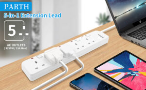 PARTH 5m Extension Lead with Switches Surge Protection UK Plug Extension 5 Metre Cable Extension Cord 5 Way Sockets Power Extension with Overload Protection 3250W/13A