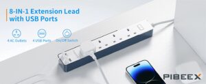 Extension Lead with 2 USB Slots 4 Outlets, Power Strip