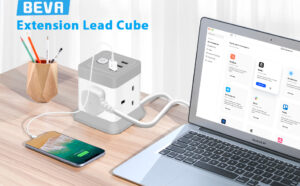 Extension Lead Cube with USB, BEVA 4 Way Power Strip with 3 USB Ports, Desktop Power Extension Socket with 1.5M Extension Cable Cords for Home Dorm Office Travel-WHITE…