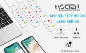 Mscien 3M Extension Lead With Switches 5 Way Surge Protected Extension Lead UK Wall Mount Power Strip With 3 Meter Extension Cord 5 Gang Plug Extension Sockets 2500W/10A