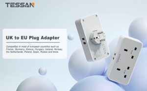 SpotCurrent European to UK Plug Adaptor Pack of 2 – 13Amp Fuse 250V Grounded Travel Adapter Type C/E/F Schuko to Type G Plug Adapter – Continental Plug Converter 2 Pin To 3 Pin – White