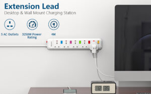 3M Extension Cable, Extension Lead with 6 Way Outlets 5 USB(5A, 1 USB C and 4 USB A Ports), 3250W Overload Protection, 3M Braided Extension cord, Surge Protection Plug Extension Socke