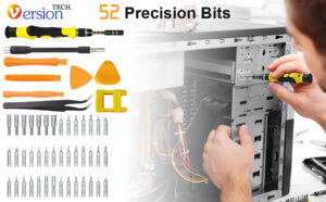 VersionTECH. 52 in 1 Precision Screwdriver Set DIY Repair Tools Kit Why Choosing Us? â With a professional storage box and everything in its place. â 42 screwdriver bits meet various repairing purposes. â 10 other necessary screwdriver accessories. â Made of industrial-grade CR-V steel with hardness HRC 50-55. â Coated with chrome finish and processed with heat treatment for lasting performance. â Widely used for both individual and professional purposes for various electronics, household appliances, crafts and DIY projects. 40 Screwdriver Bits: Torx: T2, T3, T4, T5, T6, T7, T8, T9, T10, T15 Hexagonal: H0.9, H1.3, H1.5, H2.0, H2.5, H3.0, H4.0 Mini Sockets: M2.5 , M3.0 , M3.5 , M4.0 , M4.5 , M5.0 , M5.5 Slotted: SL1.5, SL2.0, SL2.5, SL3.0, SL4.0 Phillips: PH0000, PH000, PH00, PH0, PH1 Pentalobe: 0.8, 1.2, 1.5 Y-Type: Y0.6 , Y2.0 , Y2.5 Triangle: â³2.0 , â³2.3 SIM Card Slot Pin: 0.8, U-Type: U2.6 Specifications: Material: Steel Handle length: 120mm/4.72″ Size:15.5*10*3.3cm/6.1*3.9*1.3″ Package weight:304g What’s in the box? 1 X Extension bar 1 X Screwdriver handle 40*screwdriver bit 10*screwdriver accessories Description: 52 in 1 Precision Screwdriver Set: Handy robust storage case providing easy access to bits Contents cover all popular bit types and sizes including security Torx bits Magnetic bit holder providing firm retention of screwdriver bits general house repairs, assembly, electronics and projects home furniture and appliances, computers and eyeglasses Fits for most of popular phone model, tablet, PC, iPad, computer, laptop, hard driver, eyeglass, household device, etc Check Offer Price Weight: 340 g Size: 52 in 1 Dimensions: 17.5 x 10 x 3.3 cm; 340 Grams Batteries Required: No Batteries Included: No Manufacture: VersionTECH. Size: 52 in 1