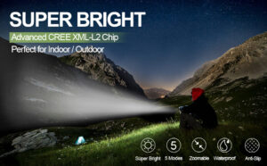 LED Torch Rechargeable Super Bright 2000 Lumen Tactical Flashlight L2 CREE Powerful Zoomable Torches Waterproof Handheld Torch Light with Batteries, USB Charger, Cycling Handlebar Mou