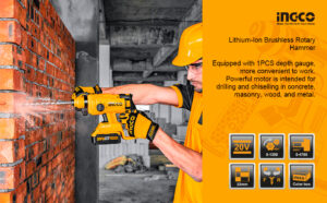 INGCO Lithium-Ion Rotary Hammer with Brushless Motor, 4 in 1 Function Adjust Knob,3PCS Drill Bits and 1PCS Chisel(Body Only) CRHLI2201