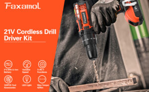 Faxamol Cordless Drill Driver 21V, Combi Drill with 2 Batteries 2000mAh, 42Nm Max Electric Drill, 25+3 Torque Hammer Drill, 3/8″ Chuck, 2 Speed, LED Light for Home and DIY Projec