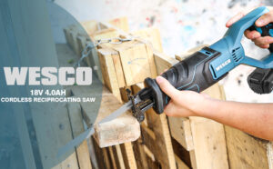 WESCO Cordless Reciprocating Saw 18V, 4.0Ah Li-Ion Battery, 0-3000SPM Variable Speed, 20mm Stroke Length,Tool-Free Blade Change, 6 Saw Blades Electric Saw Kits for Wood Metal / UKWS2947.1