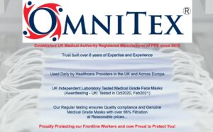 British Brand | Omnitex BLACK 3ply Premium Type IIR Disposable Surgical Face Mask | EN14683:2019 | 98% Filtration, Fluid Resistant, Medical Face Mask 2R with Ear Loops – Pack of 50