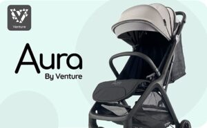 Aura Stroller by Venture, Ultra Compact Lightweight Travel Stroller Fully Reclining Baby to Toddler Pushchair – Grey/Black 0-36m