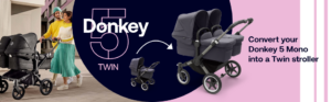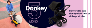 Bugaboo Donkey 5 Mono, Convertible Into Side by Side Double Stroller, Improved Design, Reversible Seat, One Hand Steering and Side Basket, Midnight Black