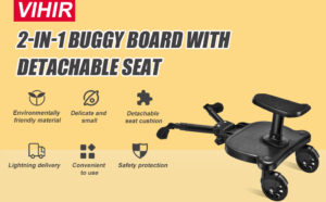 Vihir Universal Buggy Board with Seat, Kiddy Board, Pram Accessory for Children from 2-6 Years (25 kg), Compatible with Almost Every Stroller and Pram, Black