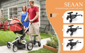 Universal Buggy Board with seat,SEAAN Standing Board, Toddlers Stroller Board Kiddy Board Stable Two Wheel Design with Seat ,Universal Standing Board fits Any Pushchair Available