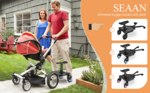Universal Buggy Board with seat,SEAAN Standing Board, Toddlers Stroller Board Kiddy Board, Two Wheels Design,Pram Accessories, with Pram Seat Standing Board fits Any Pushchair Available-Blue