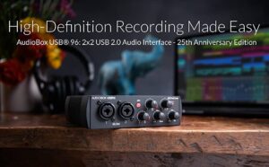 PreSonus AudioBox USB 96 – 25th Anniversary Edition, 2-In/2-Out audio interface with software bundle including Studio One Artist, Ableton Live Lite DAW and more for recording, streaming and podcasting