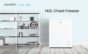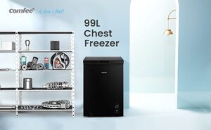 COMFEE’ RCC100BL1(E) 99L Freestanding Black Chest Freezer with Adjustable Thermostats, 4 Star Freezer Rating, Suitable for Outbuildings, Garages and Sheds [Energy Class F]