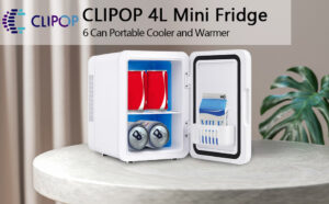 CLIPOP Mini Fridge Quiet 4L 6 Cans Portable Car Refrigerator, AC+DC Power Cooler and Warmer for Bedroom, Camping, Dorm, Travel, Office, Personal Fridge for Skin Care, Makeup, Drinks, Food (Black) [Energy Class A++]