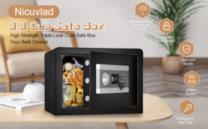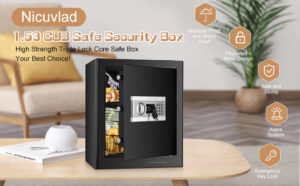 Nicuvlad Safe Box with Key Electronic Password Safe Cabinet Fireproof and Waterproof Safe All Steel In-Wall Home Office Triple Lock Core Safe for Cash Money Jewelry (17L, Black)