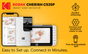 KODAK Cherish C525P Smart Video Baby Monitor with 5” Display Camera and Audio – Remote Pan-Tilt Camera with App and Night Vision- Long-Range Wifi Baby Monitor, HD Video, 2-Way Talk – IP Dog Nanny Cam