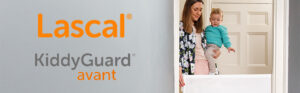 Lascal KiddyGuard Avant Stylish Baby Stair Safety Gate, Retractable Door Gate with Mesh and Brushed Aluminium Housing, Door Safety Gate up to 120 cm Wide, White