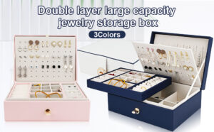 JACHAM Custom Leather Jewelry Box, Personalized Jewelry Travel Case, Customized Jewelry Organizer Box with Name and Birth Flower Month, Mom Birthday Gifts for Women (Blue)