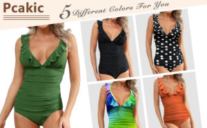Pcakic Family Matching Bathing Suit,One Piece Ruffles Swimming Costume Women V Neck Backless Bikini Set Family Matching Swimwea