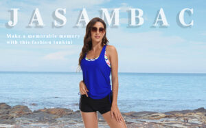 JASAMBAC Womens Tank Swimsuits Two Piece Tankini Swimsuits for Women with Shorts Athletic Bathing Suits