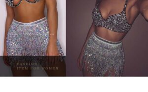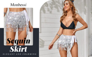 Monbessi Sequin Skirt for Women Cute Tassel Belly Dance Skirt Glitter Skirt for Women and Girls Festival Dance Performance