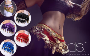 ds. distinctive style Belly Dance Skirt Hip Scarves with Dangling Gold Coins