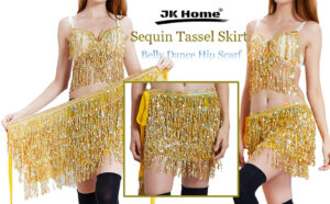 JK Home Women's Sequin Tassel Skirt Glitter Belly Dance Hip Scarf Wrap Party Costume, Boho Fringe Rave Party Skirt Belt Waist Chain for Festival Hallowee