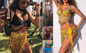 Unomor Fringe Sequin Women Skirt: 2pcs Tassel Glitter Skirt Belly Dance Cycling Hip Scarf Rave Outfit for Women and Girls Festival Halloween Performance Costume