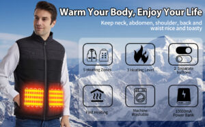Caffney Electric Heated Vest Heated Jacket USB Powered Thermal Vest Washable Unisex Winter Warm Heated Coat Fast Heating Vest for Men Women Multifunctional Heated Gilet for Cycling Skiing Camping Moto