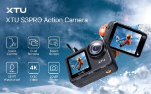 ã€2022 Upgrade】XTU S3 Pro Action Camera 4K30FPS 20MP, Waterproof Camera 30M Underwater, WiFi Vlog Camera Sports Camera, with Dual Touch Screens,Super EIS 3.0,Remote & Voice Control,Mounting Accessories