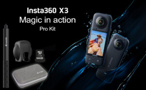 Insta360 X3 360 Degree Action Camera PRO Kit includes Invisible Selfie Stick + Case + Lens Cap + 64GB Micro SDHC Memory Card