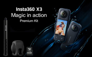 Insta360 X3 360 Degree Action Camera PREMIUM Kit includes Invisible Selfie Stick + Lens Cap + 64GB Memory Card