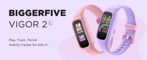 BIGGERFIVE Vigor 2 L Kids Fitness Tracker Watch for Boys Girls Ages 5-15, Activity Tracker, Heart Rate Sleep Monitor, IP68 Waterproof, Pedometer, Calorie Step Counter Watch, Lilac