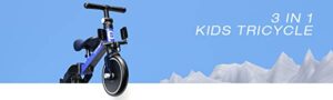 XJD 4 in 1 Kids Tricycles for 1-3 Years Old Kids Balance Bike with Parent Handle Putter Toddler Trike for Baby with Adjustable Seat and Detachable Pedals Baby Walker(Navy Blue)