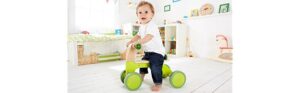 Ride-On Balance Bike, Sustainable Wood, Hape “Scoot-Around†Balance Bike, 4-Wheeled, Rubber Tyres, For Toddlers And Up, Bright Green. 12m – 4yrs