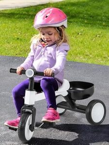 Maxmass 2 in 1 Kids Tricycle, Baby Balance Bike with Removable Pedals and Storage Basket, Carbon Steel Frame, 3 Wheels Toddlers First Bike for 2-4 Years Old