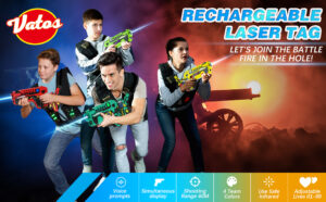 Rechargeable Laser Tag Guns Set – VATOS Laser Tag 4 Player Pack with Vests | Infrared Guns set game for kids Teen Adults Family Group Indoor Outdoor Activity | Gift for Boys Girls Aged 6-12+