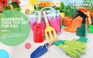 LQKYWNA 9pcs Gardening Tools Set For Kids Including Gloves Apron Shovels Rake Spray Bottle Basket Bag
