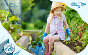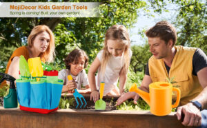 Kids Garden Tools Outdoor Play Set & MojiDecor Carry Bag Includes Watering Can Shovel Rake & Fork Toy, Gardening Tools for Kids Gardening Gloves, Watering Can, Aprons and Tote Bag