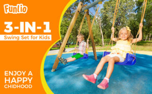 FUNLIO 3-in-1 Swing Set for Toddler with 4 Sandbags, Heavy-Duty Kid Swing Set with Safety Harness, for Backyard, Indoor/Outdoor Play, Folding Metal Stand & Clear Instruction, Easy to Assemble & Store