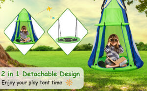 ARTETHYS Nest Swing, 100cm Kids Tree Swing with Detachable Play Tent, Indoor Outdoor Swing for Children, Height Adjustable Rope Tree Straps Included, 150kg Capacity