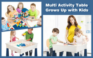 AMOSTING Kids Height Adjustable Table and 2 Chair Set ,include 158Pcs Large Size Blocks Compatible with big blocks. Non-toxic and durable plastic Toy.