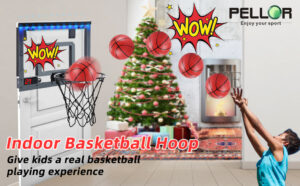 PELLOR Indoor Mini basketball Hoop Play Set with LED Light, Electronic Scoring Function and Sound, Hanging Basketball Board with 2 Balls and Pump for Children Adult (Black)