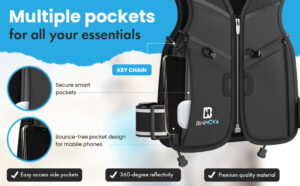 BlinkNova Running Vest for Men & Women – Running Vest Women with Breathable Neoprene, 10+ Pockets, Water-Resistant, & Adjustable Waistband – Hydration Vest Ideal for Running & Outdoor Fitness