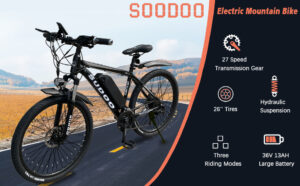 SOODOO Electric Bike 26'' for Adults, Electric Mountain Bicycle with Rechargeable and Removable 36V 13AH Lithium-Ion Battery, Mountain Ebikes with 27 Speed Transmission Gears, MTB for Men Wome