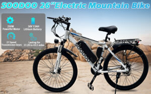SOODOO Electric Bike for Adults, 26'' Electric Mountain Bike with 36V 13Ah Removable Lithium-Ion Battery and 27 Speed Transmission Gears, Double Disc Brakes Ebike, MTB for Men Wome